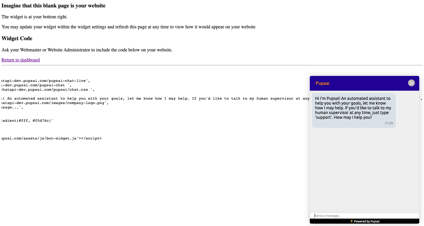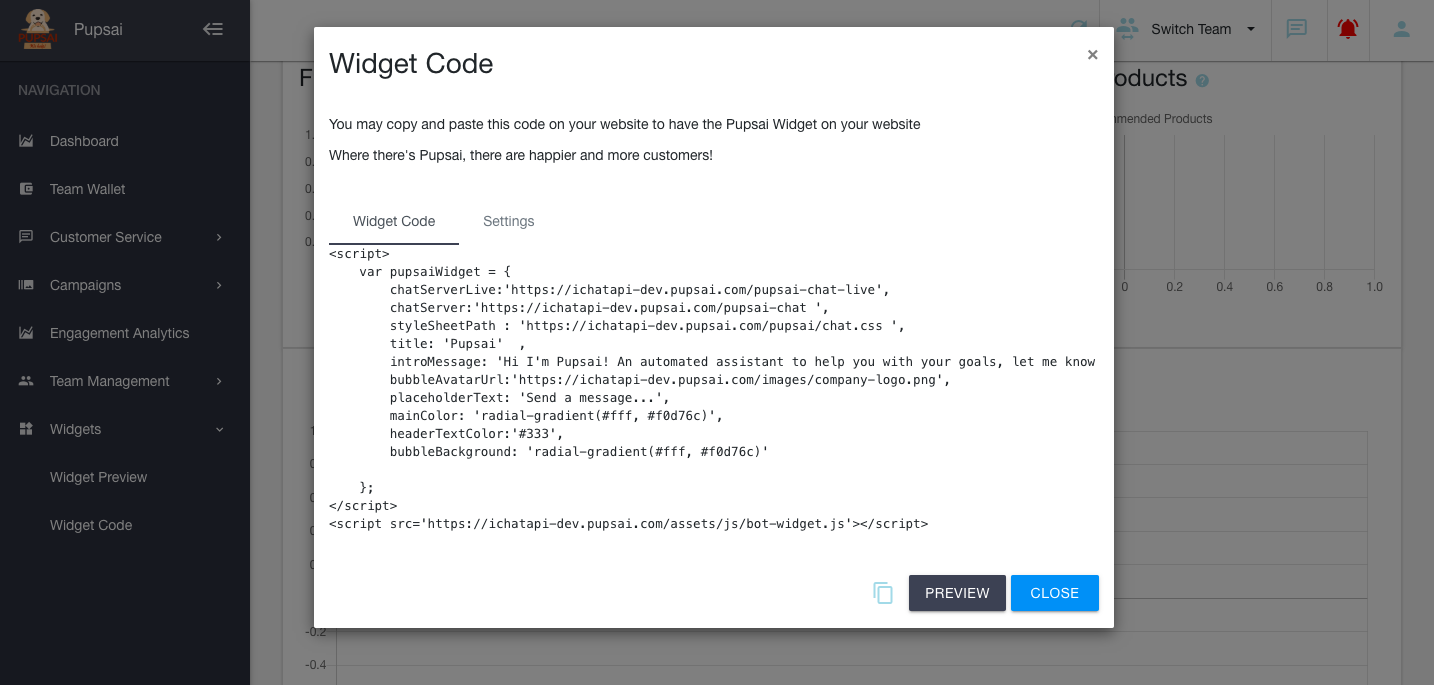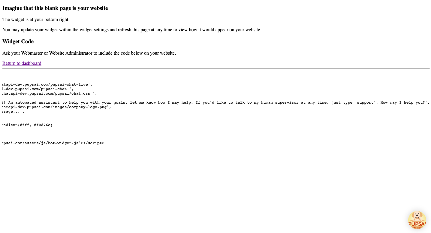 You may copy and paste the widget code on your website, wordpress and Shopify to have the Pupsai Widget there. Where there's Pupsai, there are happier and more customers!