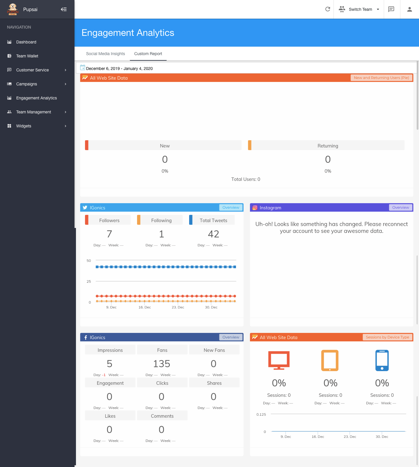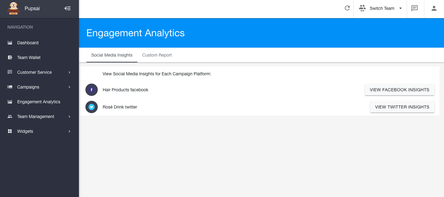 - Once your platforms have been added, they should appear under the "Social Media Insights" tab