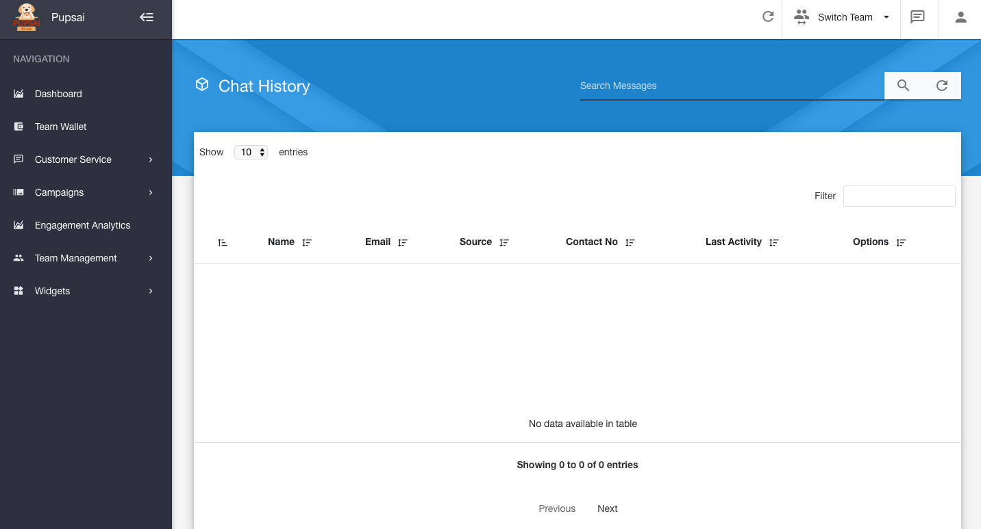 - From the "Chat History" page, you can search for specific chats by using the search bar in the top right hand corner of the page.
